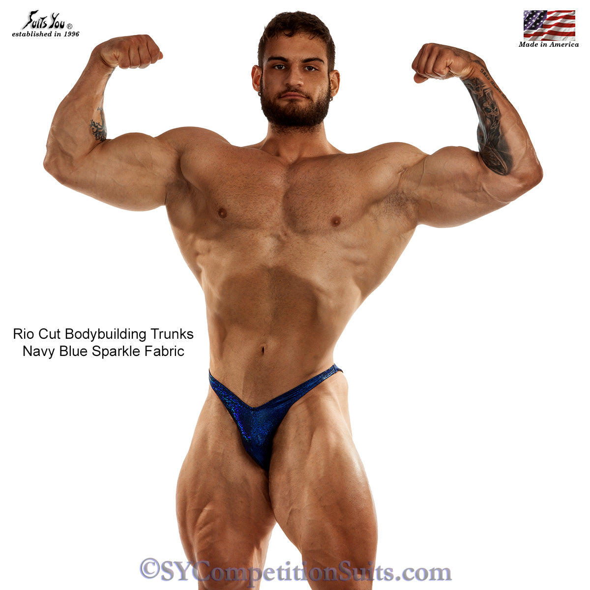 The Best Bodybuilding Trunks for Competition! Crafted with a distinctive Rio Cut and a unique gather-back design, it offers a standout look on stage. The Rio Cut provides 1/2 coverage, giving just the right balance of style and coverage, ideal for serious bodybuilding competitions. Made with high-quality hologram fabrics, these suits catch the light beautifully, ensuring you shine under the stage lights. Perfect for NPC and IFBB competitions, each bodybuilding posing trunks are tailored to highlight your symmetry and enhance your hard-earned physique, giving you the confidence to pose your best. The gathered back adds an extra dimension, contouring and supporting your shape while allowing full freedom of movement. Known as the best-fitting posing suits, they’re designed to work with your body, not against it, making them a top choice for competitors who want both comfort and a flattering fit. Step on stage in a suit that elevates your presence.